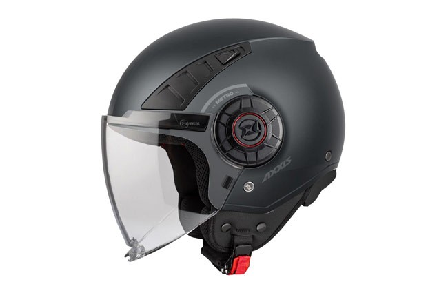 Casca moto open face Axxis Metro S V2 este o alegere modernă și practică pentru motocicliștii sau utilizatorii de scutere care caută un echilibru între protecție, confort și design urban. Concepută pentru deplasări zilnice și călătorii scurte, această cască tip jet se remarcă printr-un design aerodinamic și elegant, completat de o vizieră lungă transparentă de tip MT-V-26B care oferă un câmp vizual larg și protecție eficientă împotriva vântului, insectelor și particulelor de praf. Carcasa este realizată din ABS (policarbonat) cu densități diferite, un material rezistent la impact care contribuie la siguranța riderului fără a compromite greutatea redusă a căștii ceea ce asigură confort chiar și în timpul utilizării prelungite. Modelul Axxis Metro S V2 este certificat conform standardelor europene de siguranță ECE/ONU 22.06 și DOT, respectând cele mai noi cerințe privind protecția motocicliștilor. Pentru un plus de confort, casca este dotată cu un interior antialergic, respirabil, detașabil și lavabil, care menține o igienă optimă și o senzație plăcută la purtare. Sistemul de ventilație integrat, cu prize de aer în partea superioară și evacuare în partea din spate, ajută la circulația eficientă a aerului în interiorul căștii, reducând acumularea de căldură în timpul deplasărilor. Închiderea micrometrică permite fixarea rapidă și sigură a căștii, fiind ușor de ajustat chiar și cu mănuși. Disponibilă într-o gamă largă de mărimi, casca Axxis Metro S V2 este ideală pentru utilizatorii care caută o cască moto open face fiabilă, confortabilă și omologată conform celor mai noi standarde de siguranță pentru motociclete și scutere.