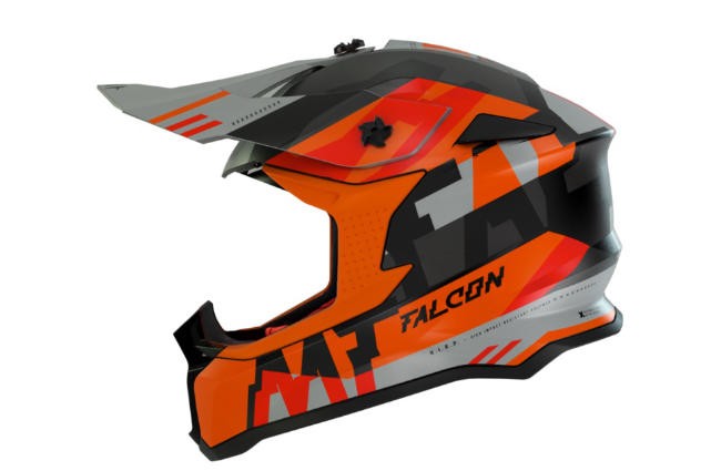 Casca off road MT Falcon Arya A7 este fabricata din ABS – Policarbonat (termoplastic injectat, cu densitati multiple) si dispune de urmatoarele omologari: ECE/ONU22.05/P; DOT. Caracteristici: interior anti-alergic, detașabil (poate fi spalat), fabricat din materiale multistrat cu multiple canale de ventilare. Casca se poate purta cu protectie de gat (“helmet brace ready for Neck brace”), are cozoroc ajustabil, aerodinamic si sistem prindere: double ring (double “D”). Greutate: 1.4 kg.