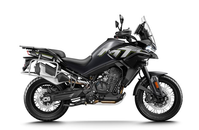 CFMOTO 800MT Explore Edition este o motocicletă adventure touring premium din segmentul mediu, concepută pentru riderii care își doresc confort ridicat, autonomie mare și tehnologie avansată pentru călătorii pe distanțe lungi. Designul robust, cu protecții laterale, parbriz reglabil, suport pentru bagaje și iluminare LED completă, evidențiază caracterul touring al modelului și îl pregătește pentru aventuri pe asfalt sau pe drumuri neasfaltate. Poziția de pilotaj ergonomică, șaua spațioasă și protecția aerodinamică eficientă oferă un nivel ridicat de confort atât pentru utilizarea zilnică, cât și pentru expediții lungi. Motocicleta este echipată cu un motor bicilindric paralel în patru timpi, DOHC, răcit cu lichid, cu o capacitate de 799 cm³, care dezvoltă 67 kW (95 CP) la 9.250 rpm și un cuplu de 75 Nm la 8.000 rpm. Propulsorul utilizează injecție electronică și accelerație ride-by-wire, fiind cuplat la o cutie de viteze cu 6 trepte cu ambreiaj multidisc în baie de ulei cu funcție slipper și quickshifter bidirecțional, oferind accelerație puternică și schimbări rapide ale treptelor. Modelul dispune de mai multe moduri de pilotaj, precum Rain, Sport, care permit adaptarea comportamentului motocicletei la diferite condiții de drum. Șasiul tubular din oțel este completat de suspensii KYB complet reglabile, cu furcă inversată în partea frontală și monoamortizor spate, oferind stabilitate și confort pe teren variat. Sistemul de frânare utilizează două discuri frontale de 320 mm cu etriere radiale J.Juan și un disc spate de 260 mm, asistate de sisteme electronice precum ABS Bosch cu funcție cornering și control al tracțiunii. Motocicleta rulează pe roți de 19 inch pe față și 17 inch pe spate, echipate cu anvelope 110/80 R19 și 150/70 R17, configurație specifică motocicletelor adventure touring. CFMOTO 800MT Explore Edition are o lungime de 2.234 mm, o înălțime a șeii de 825 mm și o greutate de 231 kg în ordine de funcționare. Rezervorul de combustibil de 19 litri oferă autonomie ridicată pentru călătorii lungi. Echiparea tehnologică include un display TFT multimedia de 8 inch cu funcții MMI, cruise control, monitorizare a presiunii în anvelope, keyless start, radar spate pentru monitorizarea unghiului mort, scaun și mânere încălzite, porturi USB și sistem de iluminare LED complet. Prin combinația dintre motorul puternic, suspensiile reglabile și dotările touring avansate, CFMOTO 800MT Explore Edition se poziționează ca o motocicletă adventure modernă, destinată riderilor care își doresc confort, performanță și tehnologie pentru explorarea drumurilor lungi.