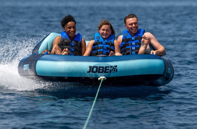 Jobe Proton este un colac tractabil gonflabil creat pentru distracție intensă în trei, oferind o combinație excelentă între stabilitate, confort și adrenalină. Conceput pentru până la trei persoane, acest model păstrează performanța consacrată a gamei Proton, fiind ideal pentru viraje strânse, accelerații rapide și sesiuni pline de energie pe apă. Spătarul integrat oferă un plus de susținere și siguranță pentru toți riderii, ajutându-i să rămână stabili chiar și în cele mai dinamice manevre. Mânerele ergonomice, prevăzute cu protecții din neopren pentru articulații, asigură o prindere confortabilă și fermă pe toată durata tractării. Construcția durabilă, realizată din cameră interioară din PVC de 24G și husă exterioară din nylon 840D dublu cusut, garantează rezistență îndelungată la uzură și solicitări intense. Sistemul de drenaj îmbunătățit ajută la evacuarea rapidă a apei, menținând performanța optimă în timpul utilizării. Cu sistem de conectare rapidă la barcă și valvă Boston pentru umflare eficientă, Proton Towable 3P este alegerea perfectă pentru familii sau grupuri de prieteni care caută un colac tractabil sigur, rezistent și extrem de distractiv, cu un design modern care iese în evidență pe apă.