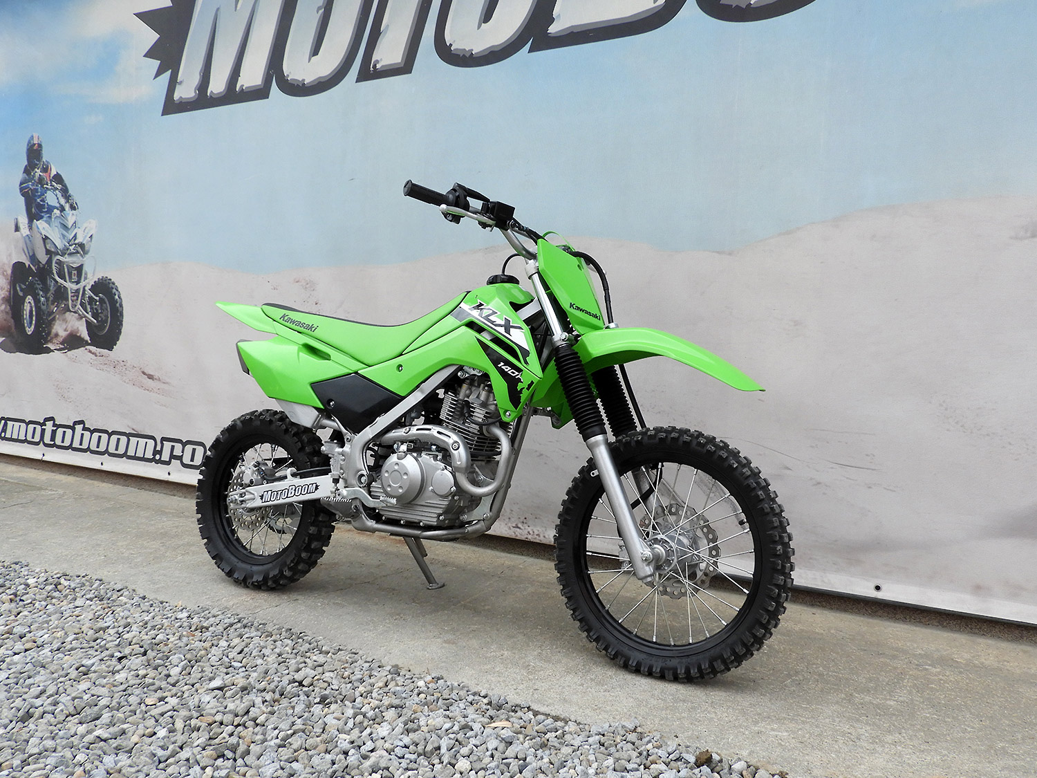 Motocicleta Kawasaki KLX 140R, model 2024, second, motor 144cmc, pornire electrica, transmisie cu 5 trepte, stare foarte buna. TVA-ul nu este deductibil.