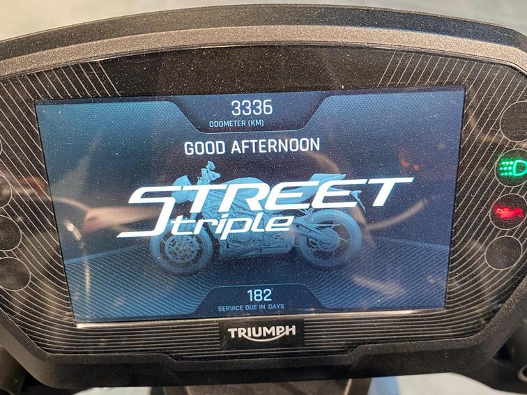 Triumph Street Triple 765 RS – model 2025, 3336 km, in stare foarte buna, revizii la zi. Accesorii suplimentare in valoare de 390 Euro: protectii de cadru (cod: A9788013), capace protectie motor (cod: A9610765), protectie pentru rezervor (cod: A9790152). TVA-ul este deductibil.
