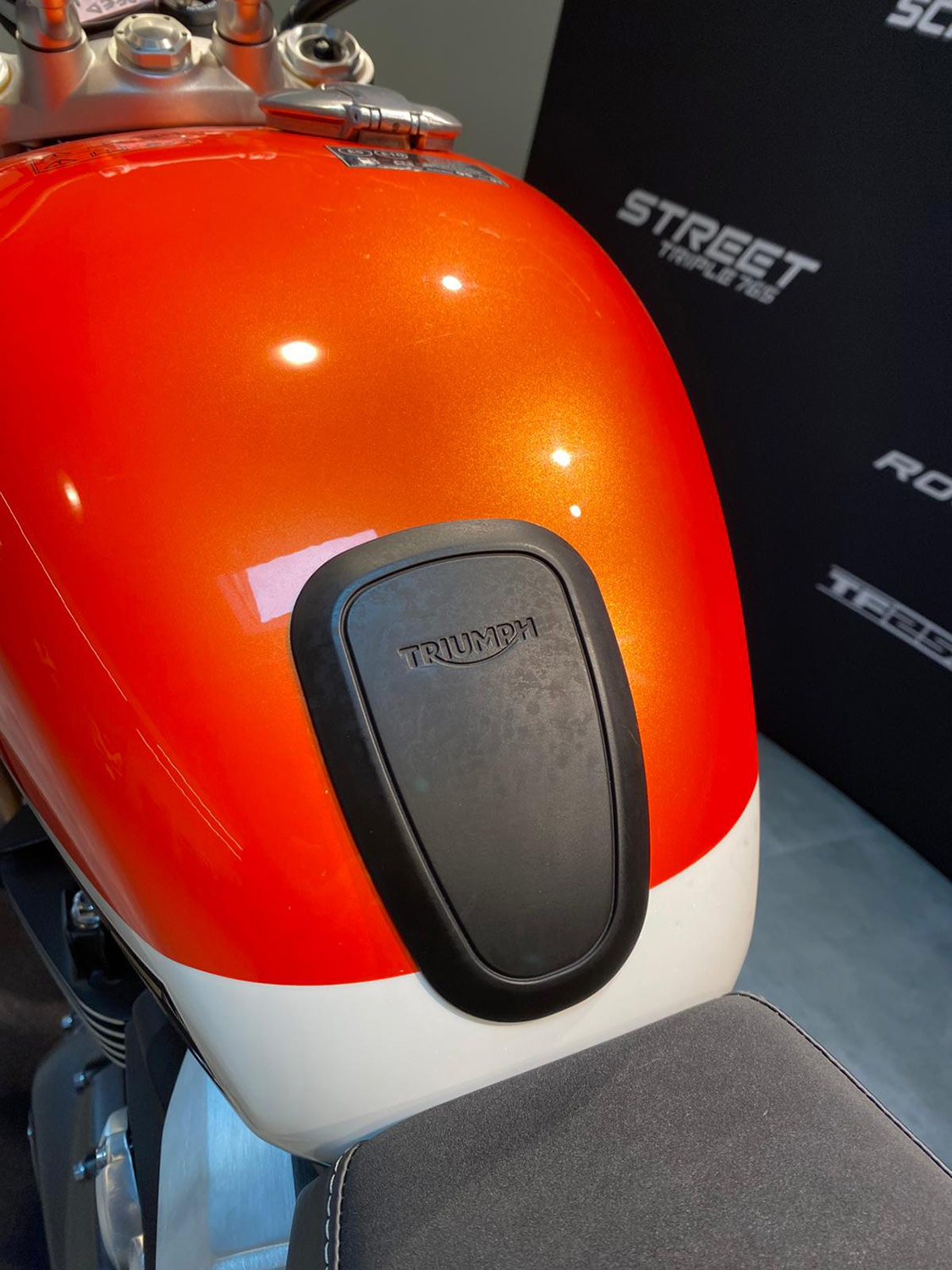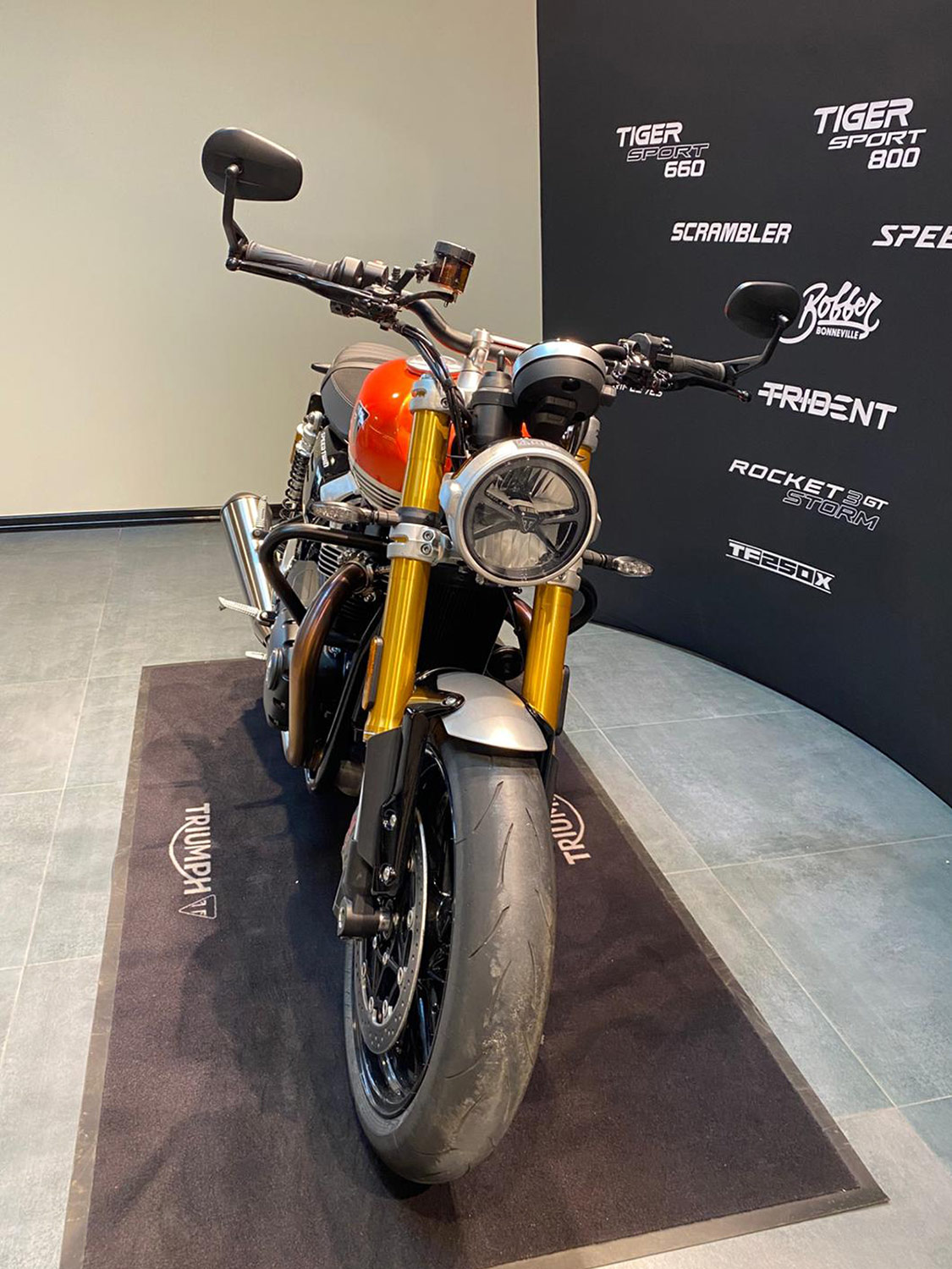 Triumph Speed Twin 1200 RS, model 2025, 2.738 km, unitate demo, in stare foarte buna, fara incidente, revizii la zi. Accesorii suplimentare in valoare de 300 Eur: Protectie pentru rezervor (cod: A9798060), bare de protectie (cod: A9788022). TVA-ul este deductibil.