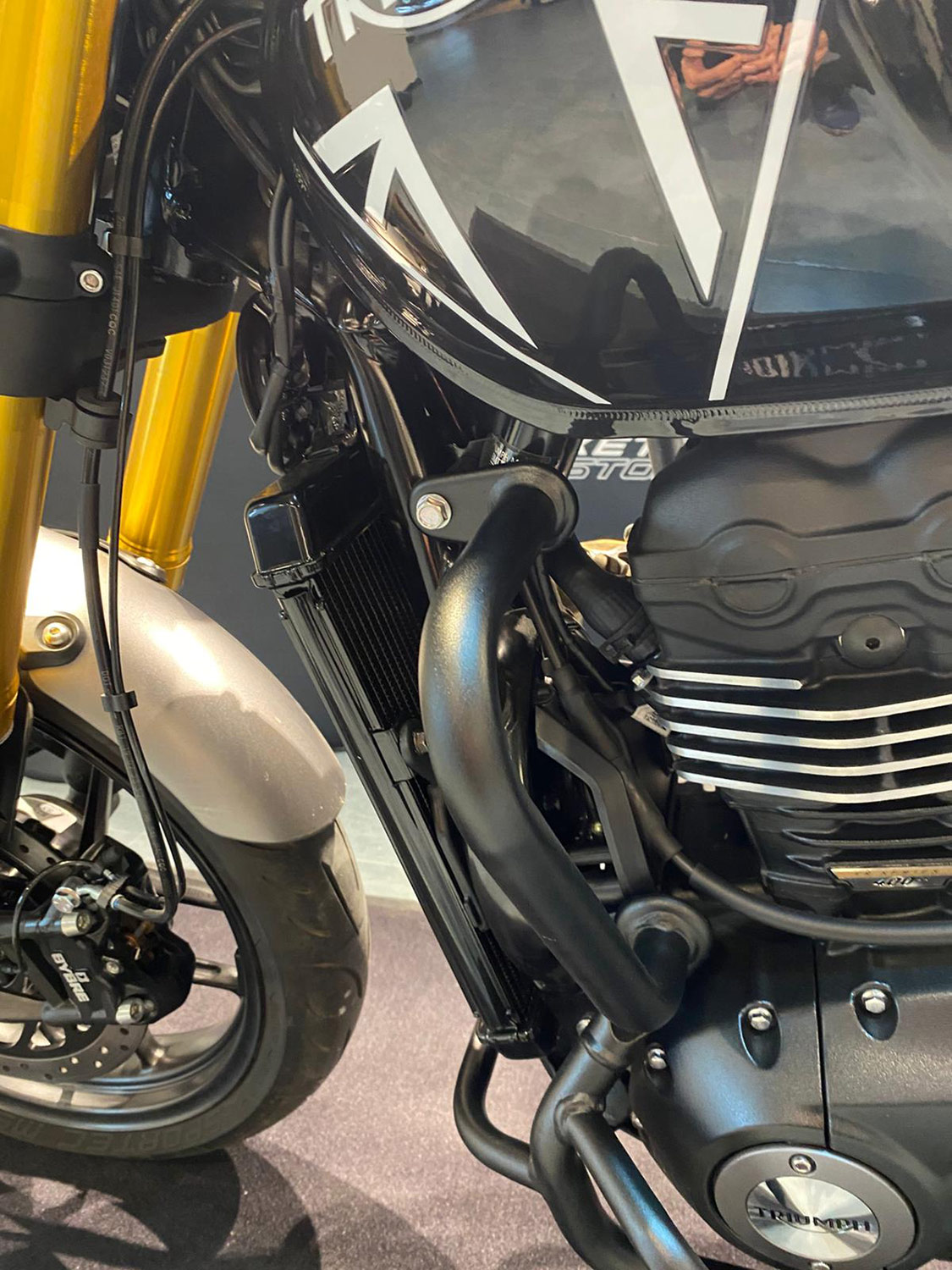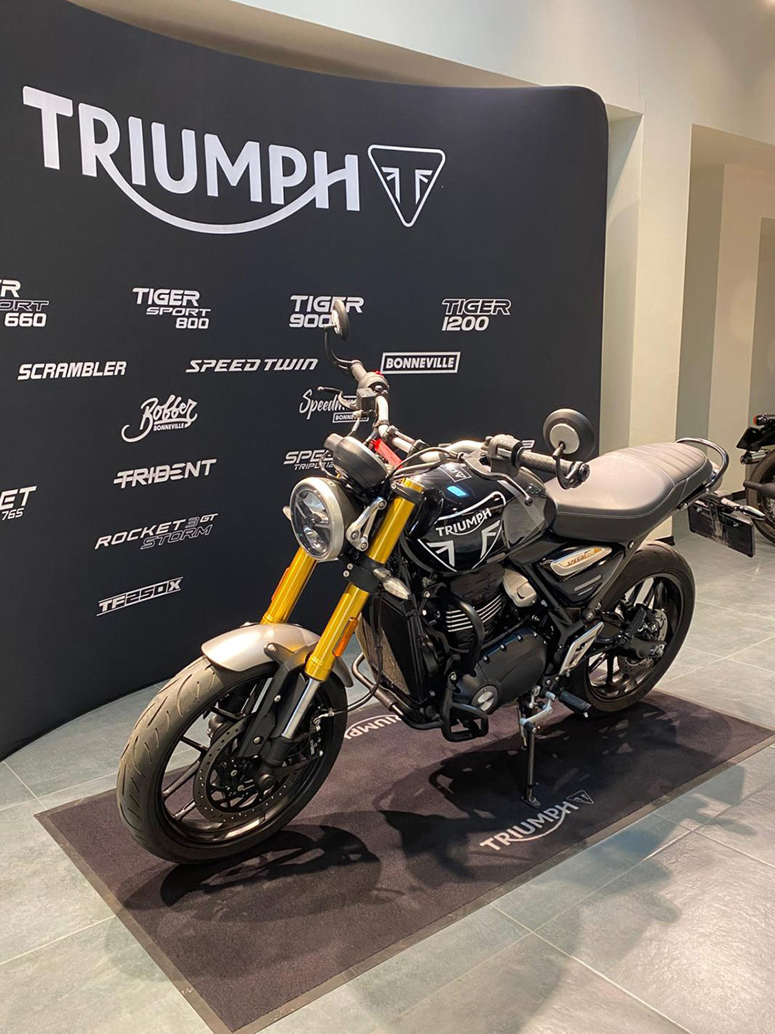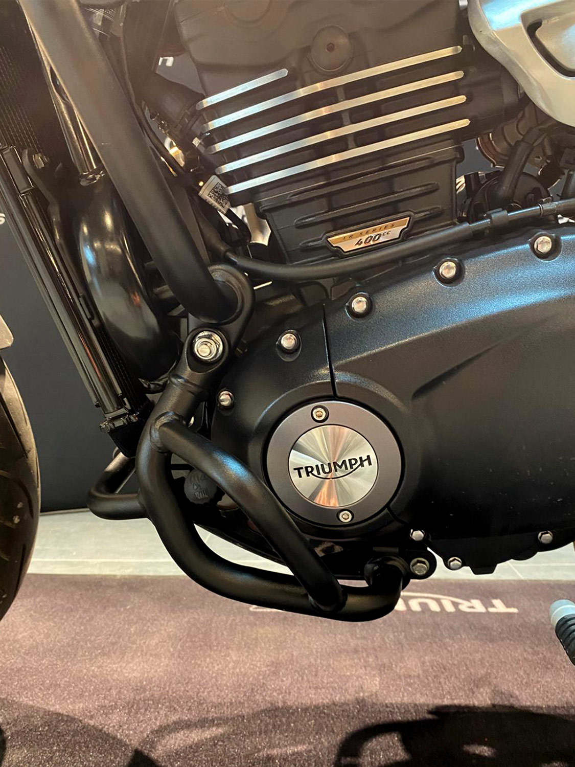 Triumph Speed 400, model 2025, 537 km, unitate demo, in stare foarte buna, fara incidente, revizii la zi. Accesorii suplimentare in valoare de 400 Euro: Protectie pentru zona superioara (cod: 36TA0038), bare de protectie motor (cod: 36TA0032), protectie pentru rezervor (cod: 36TA0033).