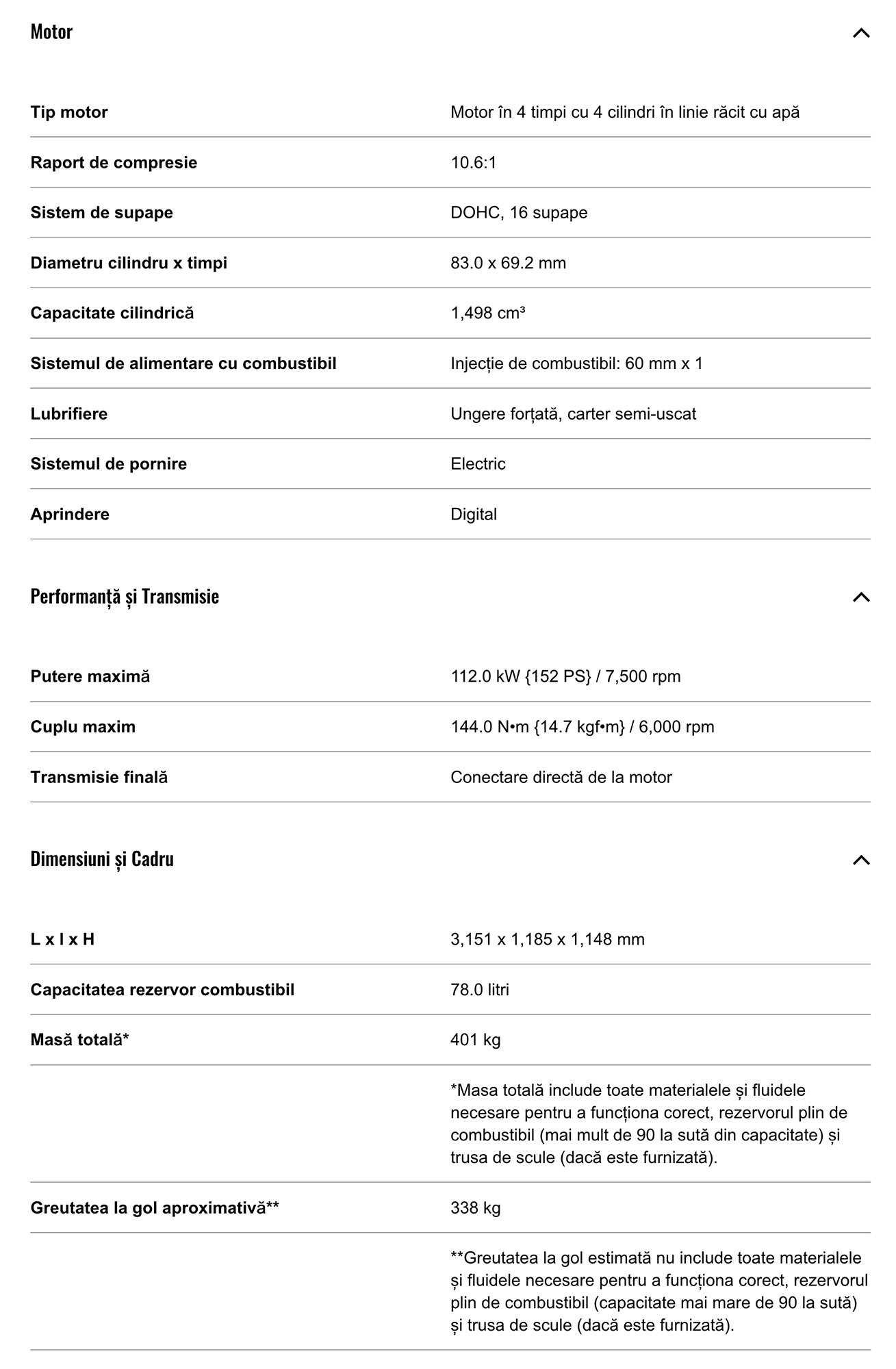 Specificatii tehnice