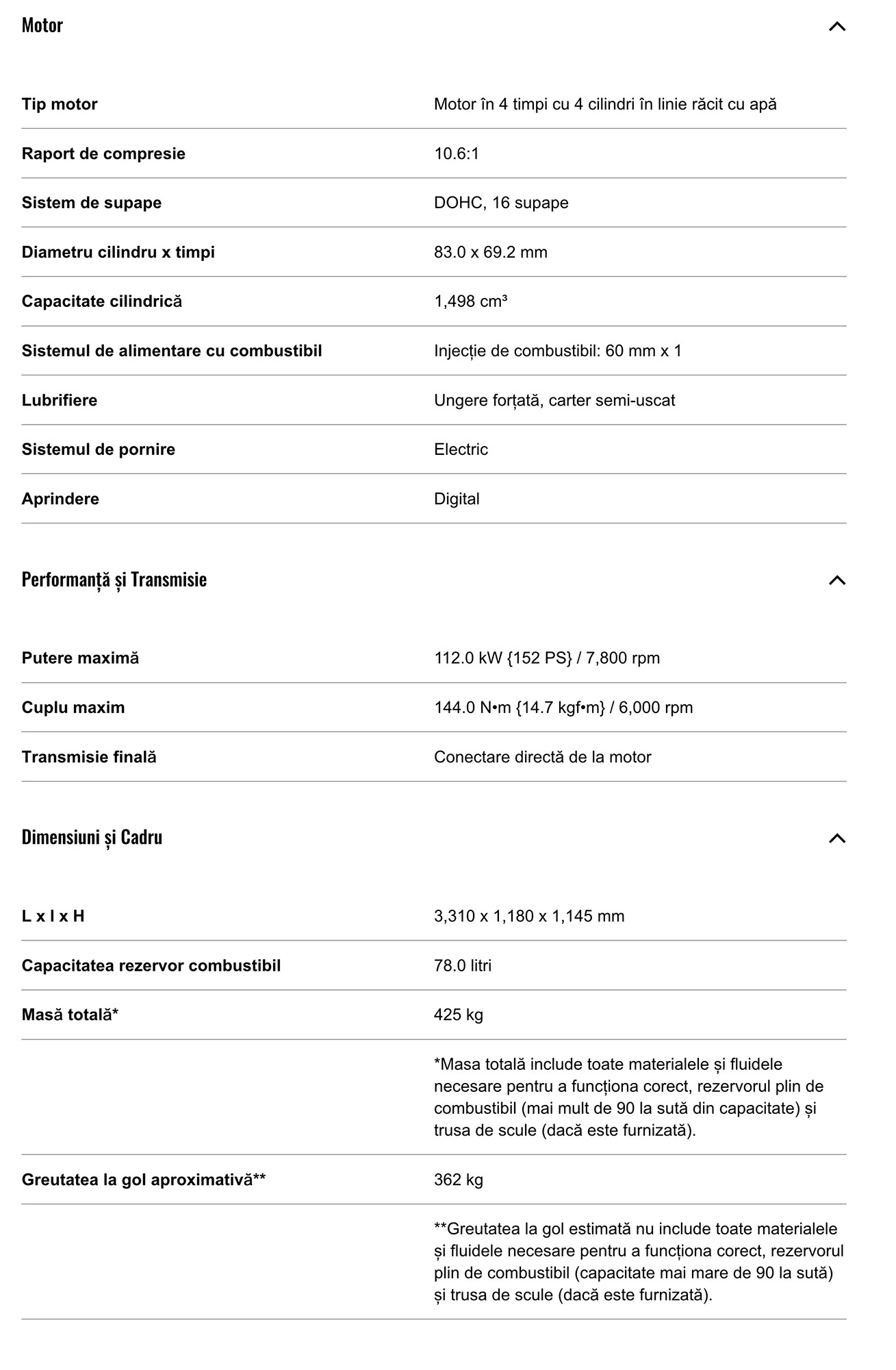 Specificatii tehnice