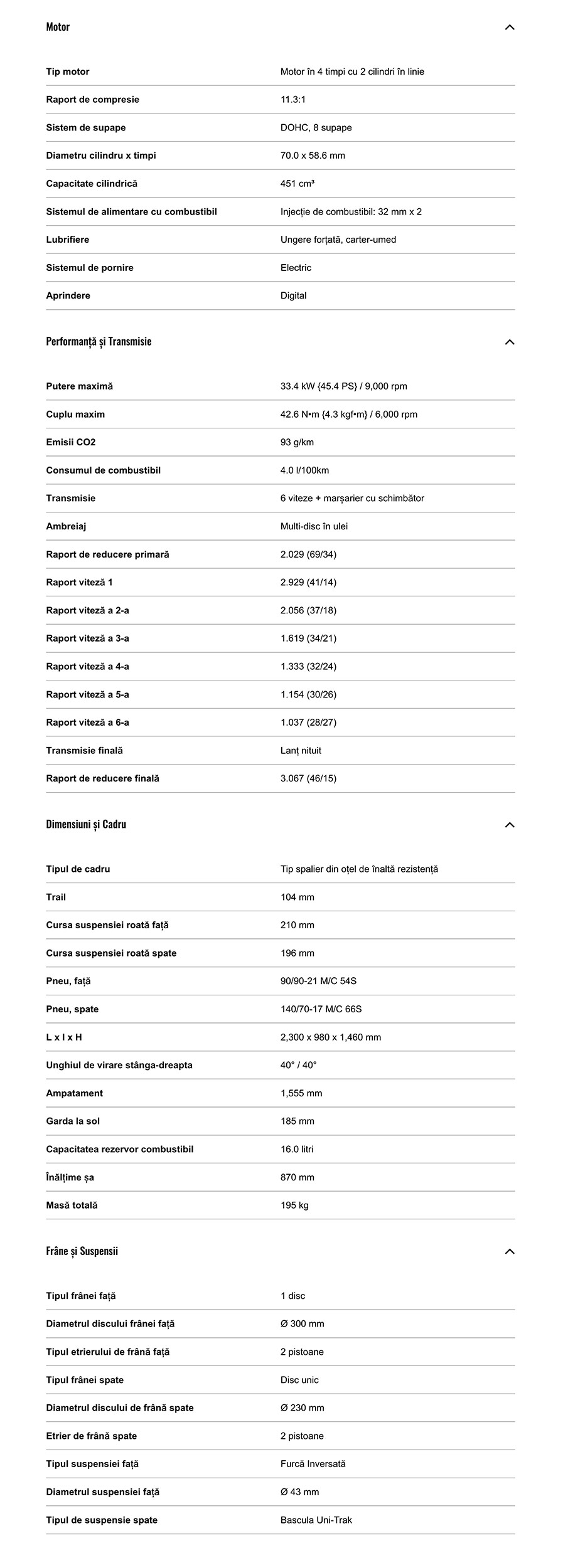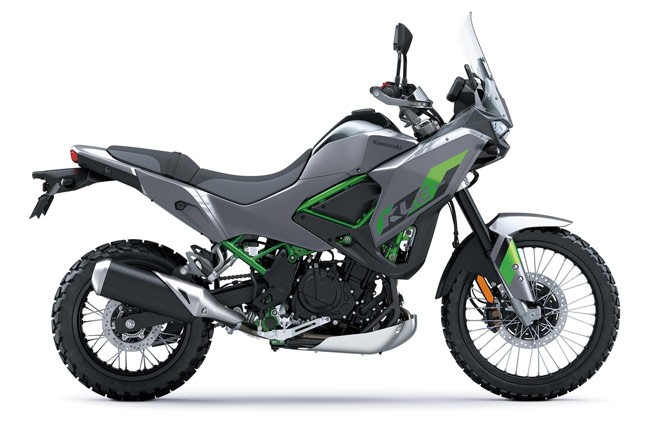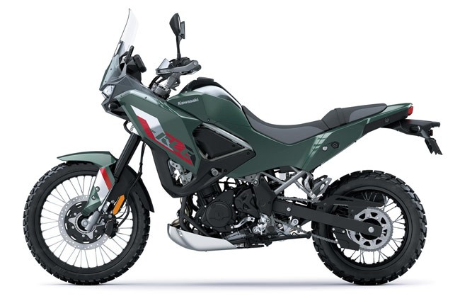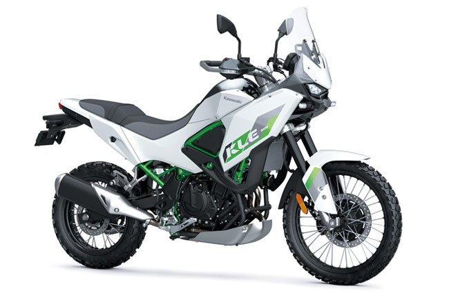 Kawasaki KLE500 SE duce spiritul rally-adventure al modelului standard KLE500 la un nivel superior de confort și protecție, adăugând un parbriz mare ajustabil, protecții de mână robuste și o placă de protecție (skid-plate) sub motor pentru explorări mai încrezătoare pe teren accidentat. Motorul este același paralel-twin de 451 cm³, cu injecție și raport de compresie 11,3:1, care produce 33,4 kW (45,4 CP) la 9.000 rpm și un cuplu de 42,6 N·m la 6.000 rpm, iar transmisia pe șase trepte și ambreiajul multi-disc asigură un control precis și un comportament dinamic echilibrat. Cadrul trellis din oțel, împreună cu suspensia KYB (furcă inversată față și Uni-Trak spate), oferă o cursă generoasă (210 mm față, 200 mm spate), iar roțile pe spite 21″/17″ amplifică capacitățile adventure. Sistemul de frânare dispune de frâne pe disc cu ABS selectabil, permițând dezactivarea ABS-ului pentru off-road atunci când este necesar. Ca tehnologii, KLE500 SE oferă un bord TFT color mai avansat, cu conectivitate wireless la smartphone prin aplicația Rideology, alături de indicator de mod economic și instrumente adaptate pentru o experiență premium. Ergonomia este inspirată de motocicletele KX, cu poziționarea manetelor și a scaunului concepută pentru confort pe distanțe mari sau în teren variat, iar capacitatea de a monta două genți laterale și un top-case extinde opțiunile pentru touring.