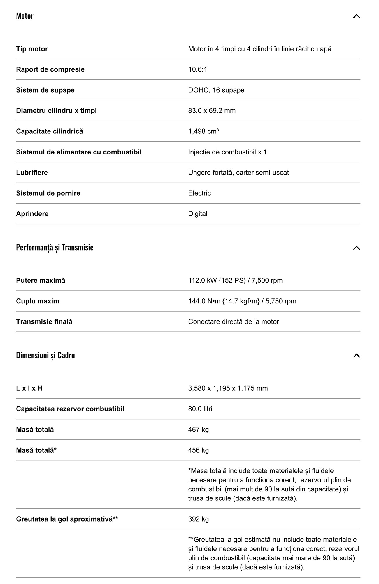 Jetski-ul Kawasaki ULTRA 160LX-S este o ambarcațiune personală premium concepută pentru cei care caută performanță, stabilitate și confort pe apă. Acest model din gama ULTRA impresionează prin designul modern și dimensiunile generoase ale platformei, oferind spațiu pentru trei persoane și o experiență de navigație stabilă atât pe lacuri, cât și pe mare. Carena de tip Deep-V, inspirată din tehnologia utilizată pe modelele de top ale brandului, asigură o manevrabilitate precisă și o stabilitate excelentă chiar și în condiții de apă agitată, ceea ce transformă fiecare ieșire pe apă într-o experiență sigură și controlată. Propulsia este asigurată de un motor cu patru cilindri în linie, răcit cu apă, cu o capacitate de 1.498 cm³, proiectat pentru a oferi o combinație echilibrată între putere, eficiență și fiabilitate. Motorul aspirat natural dezvoltă aproximativ 152 CP și livrează accelerații line, fiind potrivit atât pentru utilizare recreativă, cât și pentru activități sportive pe apă. Sistemul electronic de control include funcții moderne precum cruise control pentru menținerea unei viteze constante în timpul deplasărilor lungi, Launch Control Mode pentru accelerări optimizate și selecția modurilor de putere care permite adaptarea performanței în funcție de nivelul de experiență al pilotului sau de condițiile de navigație. Experiența de utilizare este completată de tehnologii avansate și elemente de confort specifice clasei premium. Panoul de instrumente TFT color de 7 inch oferă informații clare despre funcționarea jetski-ului și permite conectivitate Bluetooth pentru acces rapid la funcții multimedia și setări ale vehiculului. Sistemul inteligent de depozitare oferă un volum generos pentru echipamente și obiecte personale, iar compartimentele accesibile rapid sunt concepute pentru utilizare practică în timpul navigației. De asemenea, camera video amplasată în partea din spate și sistemul Kawasaki Smart Reverse cu Decelerare contribuie la manevre mai sigure și mai precise atunci când acostați sau tractați echipamente nautice. Designul exterior reflectă filosofia „dynamic luxury” specifică gamei ULTRA, cu linii fluide, finisaje premium și o atenție deosebită pentru detalii. Platforma extinsă din spate oferă spațiu suplimentar pentru activități nautice și facilitează urcarea pe jetski după înot, iar structura robustă a punții contribuie la durabilitate și stabilitate în timpul utilizării. Prin combinația dintre tehnologie modernă, performanță echilibrată și confort ridicat, Kawasaki ULTRA 160LX-S reprezintă o alegere excelentă pentru cei care caută un jetski fiabil și bine echipat, ideal pentru aventuri pe apă, plimbări relaxante sau activități sportive alături de familie și prieteni.