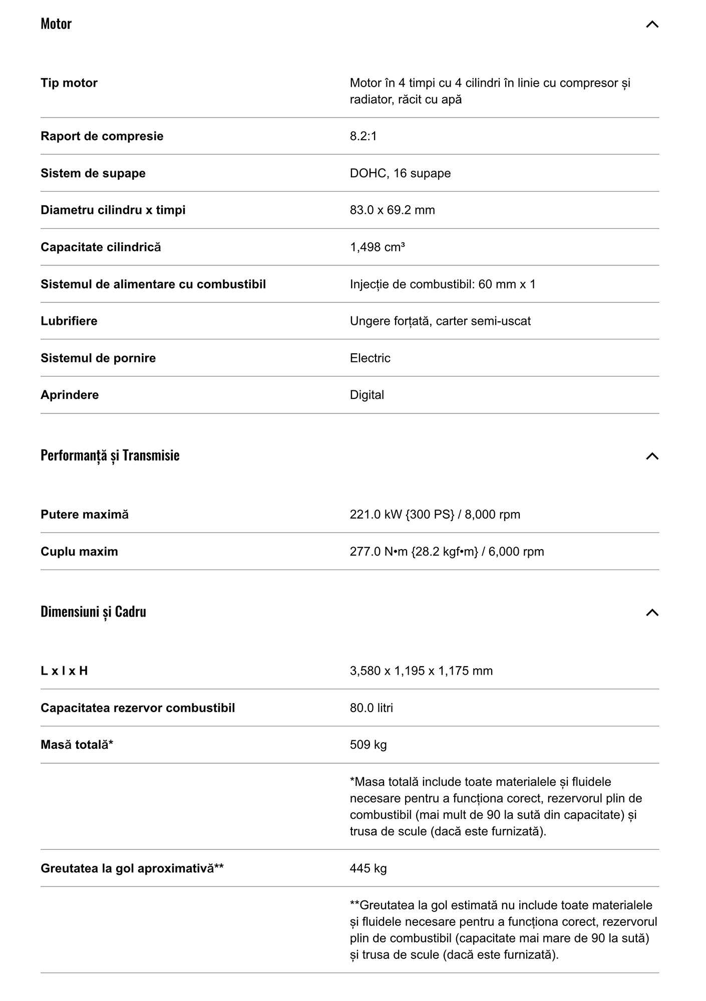 Specificatii tehnice