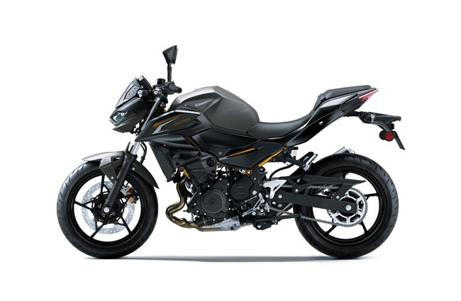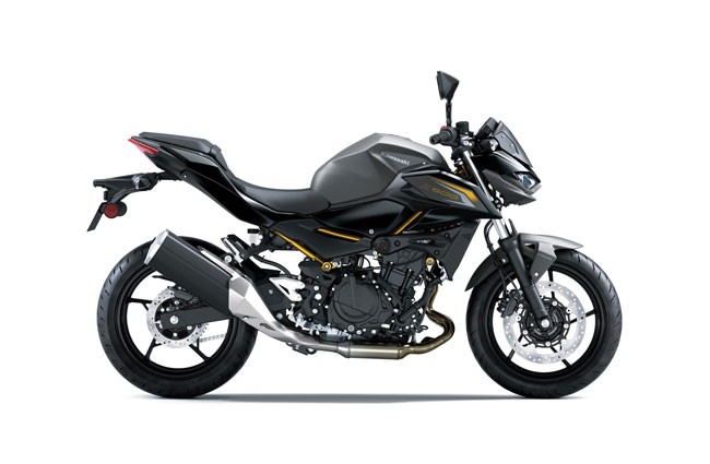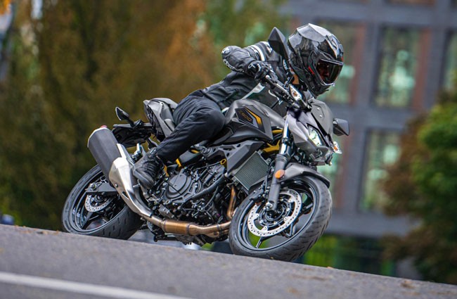 Motocicleta Kawasaki Z500 este o supernaked dinamica, conceputa pentru cei care vor performanta echilibrata in oras dar si pe drumuri virajate. Echipata cu un motor racit cu lichid, parallel-twin de 451 cm³, cu alimentare prin injectie, sistem DOHC cu 8 supape si raport de compresie 11,3:1, produce 45,4 CP la 9.000 rpm si un cuplu de 42,6 Nm la 6.000 rpm, oferind acceleratii rapide si raspuns consistent in gama medie de turatii. Cadrul tip trellis din otel de inalta rezistenta, suspensia fata cu furca telescopica de 41 mm si suspensia spate Uni-Trak cu reglaj al presiunii arcului, asigura stabilitate in viraje si control chiar si pe suprafete variabile. Dotarile de franare sunt solide: disc frontal semi-floating Ø 310 mm cu etriere cu doua pistone si disc spate Ø 220 mm, ambele cu ABS, in timp ce greutatea relativ redusa 167 kg (la plin), contribuie la agilitate si manevrabilitate sporita. Pozitia de condus este confortabila, cu inaltimea sezutului de 785 mm si un unghi al ghidonului care permite control usor in trafic, in timp ce rezervorul de 14 litri si consumul mic (3,8 l/100 km) fac din Z500 o motocicleta potrivita pentru utilizare mixta. Designul Sugomi, cu faruri fata triple, aripi agresive si silueta musculoasa, completeaza o imagine impresionanta care atrage priviri si transmite caracter sportiv.