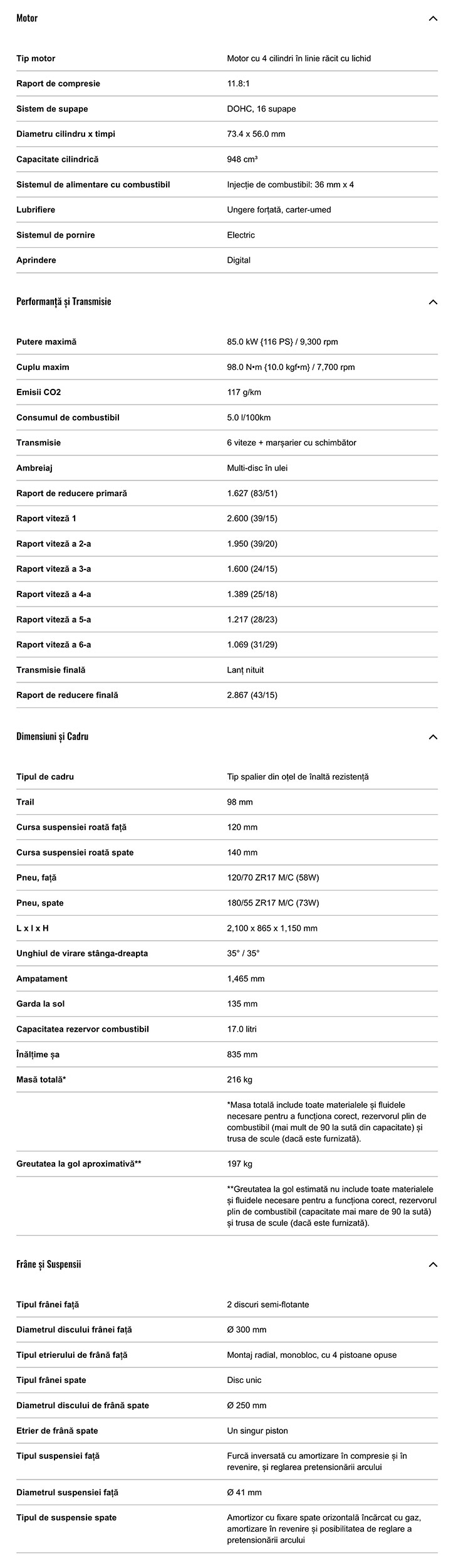 Specificatii tehnice