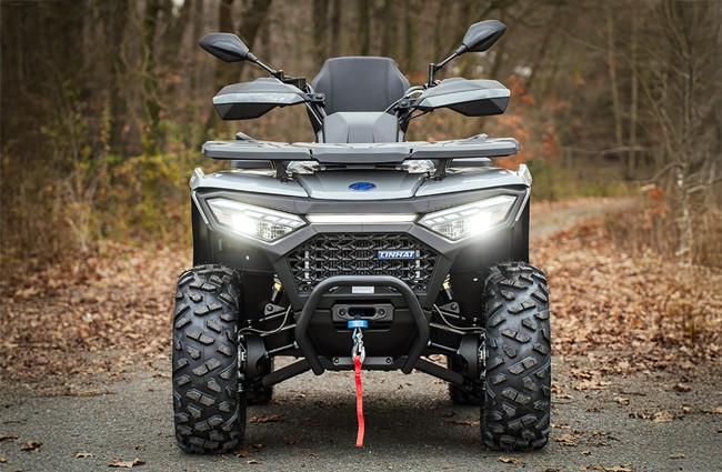 Noul ATV Linhai LandForce 650 are un design si un concept indraznet, o combinatie perfecta de putere si control pe orice tip de teren. Pregătit pentru orice provocare, Linhai LandForce 650 impresionează printr-un motor de 580 cc și 40 de cai putere, tractiune selectabila 2WD/4WD, display TFT de 7", vitezometru, tahometru, kilometraj, indicator combustibil, indicator tracțiune 2WD/4WD, indicator avertizare motor, indicator ulei, servodirecție electronica EPS, moduri de pilotare selectabile (normal, work), troliu electric de 3000 lbs, suporturi pentru bagaje fata/spate, faruri LED-Matrix. Modelul dispune de omologare T3 (inmatriculabil ca vehicul utilitar).