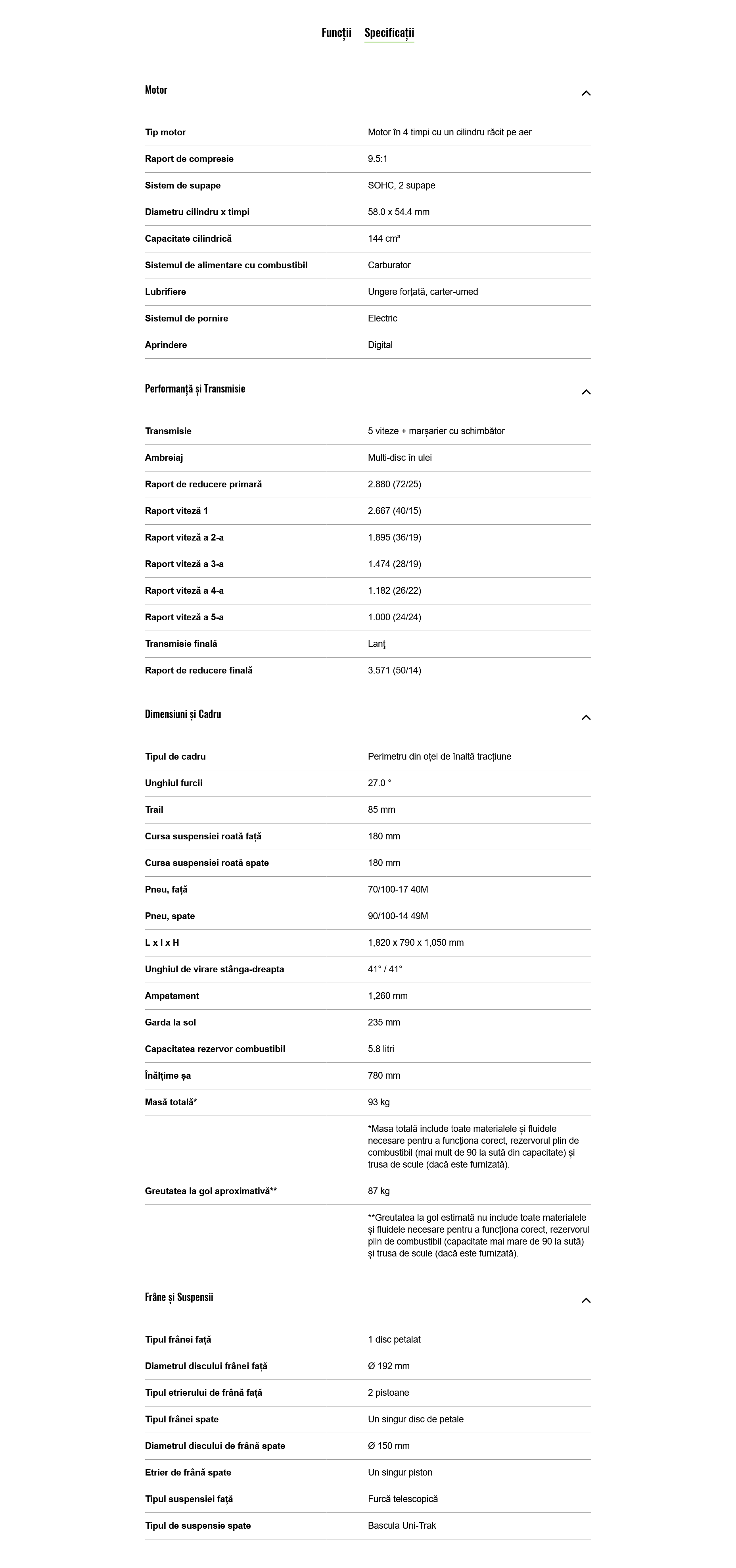 1 cilindru, 4 timpi, 2 valve, SOHC