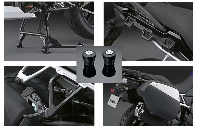 Pachetul Touring pentru Suzuki V-STROM 800 este conceput pentru pasionații de aventură care doresc o soluție completă și estetic integrată de echipare. La baza pachetului stă setul de cutii laterale (SKU 95400-25810-000), susținut de suportii superiori pentru cutii laterale (SKU 47500-25810-000) și setul de suporti inferiori pentru cutii (SKU 93700-25880-000), asigurând fixare solidă, stabilitate și un aspect uniform. Completăm soluția de depozitare cu setul de incuietori pentru cutii (SKU 95700-48810-000), care garantează siguranța bagajelor. În plus, pachetul include cricul central (SKU 42100-25820-000), util pentru întreținere și stationare pe teren variat. Fiecare componentă este produsă conform standardelor Suzuki, garantând compatibilitate perfectă cu modelul V-Strom 800 și o integrare estetică elegantă. Alege acest pachet pentru a transforma motocicleta într-un companion ideal la tururi lungi, complet utilat și protejat.