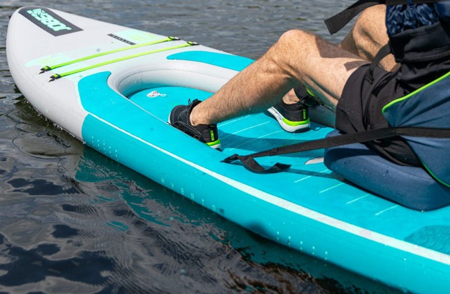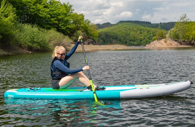 Jobe Aero Tana Hybrid SUP Premium Board 11.2 Package este o placă gonflabilă premium de tip hibrid, concepută pentru cei care își doresc versatilitate maximă pe apă, combinând experiența clasică de stand up paddle cu confortul unei plimbări în stil caiac. Acest model inteligent permite utilizarea atât în poziție verticală, pentru sesiuni active de SUP, cât și în poziție șezând, prin atașarea scaunului inclus, transformând rapid placa într-un caiac stabil și relaxant. Datorită dimensiunilor generoase și lățimii mari, placa oferă stabilitate excelentă, fiind ideală pentru explorarea lacurilor, râurilor sau zonelor de coastă, indiferent de nivelul de experiență al utilizatorului. Construcția ușoară cu tehnologie X-dropstitch și straturi lipite termic asigură rigiditate superioară, greutate redusă și durabilitate crescută, rezultând una dintre cele mai eficiente construcții din segmentul premium. Suprafața din spumă EVA antiderapantă de 5 mm oferă confort sporit și aderență sigură în timpul vâslitului, iar sistemul de depozitare frontal cu elastic permite transportul echipamentului personal în siguranță. Pachetul include o vâslă de înaltă calitate, cu 20% carbon și paletă din nylon, optimizată atât pentru SUP, cât și pentru modul caiac, precum și toate accesoriile necesare pentru o experiență completă pe apă. Cu o capacitate de susținere de până la 160 kg și un comportament echilibrat pe apă, Jobe Aero Tana Hybrid 11.2 este alegerea ideală pentru cei care caută o placă gonflabilă premium, stabilă și ușor de manevrat, perfectă pentru ture lungi, relaxare și aventuri fără compromisuri.