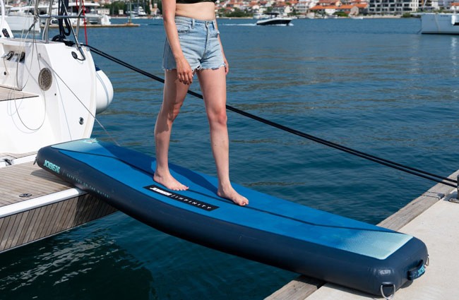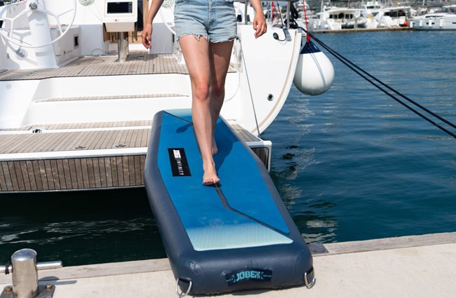 Jobe Infinity Gangway este o pasarelă gonflabilă concepută pentru a asigura un acces sigur, stabil și confortabil între barcă, ponton sau platformele plutitoare din gama Jobe Infinity. Acest produs funcționează ca o pasarelă ușoară și practică, ideală pentru urcarea și coborârea facilă de pe ambarcațiuni, eliminând necesitatea unor soluții rigide, grele sau dificil de depozitat. Construcția realizată prin tehnologie de lipire termică asigură o calitate superioară a straturilor, siguranță sporită și durabilitate ridicată în timp, menținând totodată o greutate redusă și o rigiditate excelentă. Suprafața din EVA antiderapant de 5 mm oferă aderență sigură și confort la mers, chiar și atunci când pasarela este udă. Infinity Gangway este echipată cu inele D și curele Velcro rezistente, permițând conectarea rapidă și sigură la alte platforme sau structuri plutitoare, iar mânerele integrate facilitează transportul și poziționarea. Ușor de umflat, simplu de depozitat în geanta din PVC inclusă, capabilă să susțină o greutate de până la 95 kg, această pasarelă gonflabilă Jobe este soluția ideală pentru iahturi, bărci de agrement sau zone de andocare temporare, oferind confort, siguranță și versatilitate.
