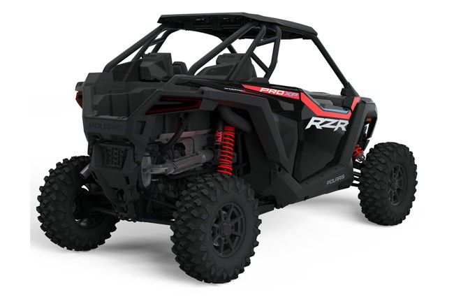 SSV RZR Pro XP Ultimate de la Polaris face parte din noua generatie de side-by-side cu o capacitate de 2 locuri. Cu un stil distinctiv, tehnologie de varf si atitudine de invingator, RZR Pro XP Ultimate vine echipat  cu un motor ProStar Turbo, 4 timpi, DOHC, 2 cilindri, supraalimentat, amortizoare FOX 2.5 Podium cu tehnologie Live Valve (amortizare controlata electronic), Sistem electronic de control al suspensiei DYNAMIX Active Suspension 2.0, Sistem de injectie electronic EFI (Electronic Fuel Injection), Tractiune selectabila Isolated Xtreme Performance True On-Demand AWD/2WD, Ecran tactil de 7" cu Ride Command, afisaj DYNAMIX 2.0, GPS incorporat, conectivitate Bluetooth si USB, mapare geografica, luminozitate si culoare fundal selectabile, intervale de service programabile, turometru, vitezometru, kilometraj, indicator temperatura lichid de racire, contor de parcurs, indicator combustibil, ceas, indicator service si coduri, indicator AWD, priza DC, faruri LED, lumini grila fata, Servodirectie Electronica EPS cu coloana de directie telescopica imbunatatita, Sistem audio premium Rockford Fosgate® Stage 4 (cu 2 tweetere, 2 difuzoare frontale, 2 difuzoare spate, amplificator de 400W cu 4 canale si un subwoofer cu amplificator de 400W integrat), radio AM/FM, usi integrale, plafon sport, camera video spate, aparatori de noroi, centuri de siguranta retractabile in 6 puncte, sistem de control electronic al acceleratiei (ETC), Jante 14 inch, aluminiu, anvelope Maxxis Carnivore.