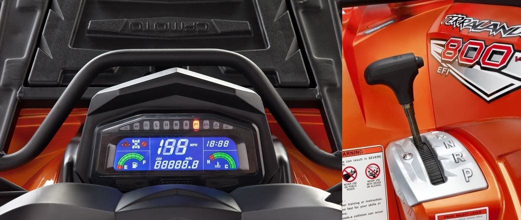 CF Moto X8 beneficiaza de o cutie automata de viteze CVT cu treapta de forta si marsarier (low, high, neutral si reverse). Actionarea modulului 2WD/4WD impreuna cu blocarea diferentialului, ii permite lui X8 sa aiba un avantaj major atunci cand conditiile sunt dificile. Selectarea modulului 2x4 sau 4x4 se face foarte usor prin actionarea butonului comutatorului electric, nefiind necesara oprirea ATV-ului.