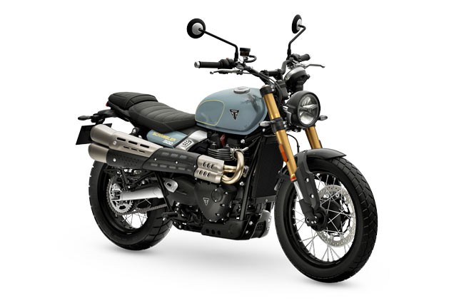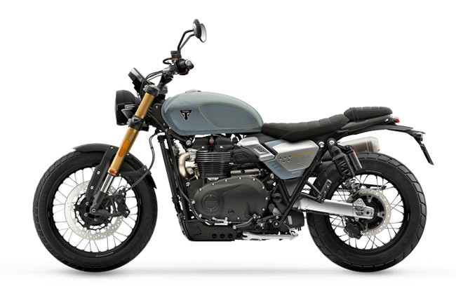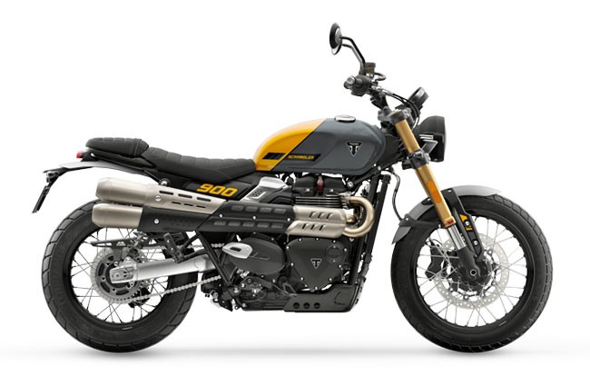Triumph Scrambler 900 este o motocicletă care îmbină stilul clasic britanic cu performanţa modernă, oferind un motor cu doi cilindri in paralel de 900 cm³, răcit cu lichid, ce dezvoltă 64,1 CP la 7.250 rpm şi 80 Nm la 3.250 rpm - suficient pentru o acceleraţie vioaie în oraş şi relaxantă pe drumuri deschise. Concepută pentru versatilitate, sasiul cu cadru tubular şi suspensia faţă cu furcă Showa de 43 mm (120 mm cursă) plus amortizoare reglabile la spate garantează manevrabilitate precisă şi confort, iar roţile cu spiţe pe dimensiuni 19″ faţă şi 17″ spate, echipate cu anvelope dual-purpose, îi conferă acel caracter scrambler pregătit pentru aventuri uşoare off-road. Frânarea se bazează pe discuri generoase (320 mm faţă, 255 mm spate) cu OCABS, iar electronica utilă — inclusiv moduri de rulare (Road, Rain, Off-Road), controlul tracţiunii şi bord digital/analog — pune siguranţa şi ergonomia în prim-plan. Cu o cutie de viteze cu 5 trepte, ambreiaj umed multi-placă şi rezervor de aproximativ 12 L, Scrambler 900 găseşte echilibrul între autonomie şi agilitate; înălţimea şeii de 790 mm şi greutatea de 221 kg oferă o poziţie de condus accesibilă şi stabilă pentru majoritatea rutelor. Estetic, elementele retro - silueta curată, evacuarea cu montare înaltă şi finisajele atent alese — transformă fiecare ieşire într-o declaraţie de stil, făcând din Triumph Scrambler 900 o alegere puternică pentru cei care caută performanţă, confort şi un look iconic într-un singur pachet.